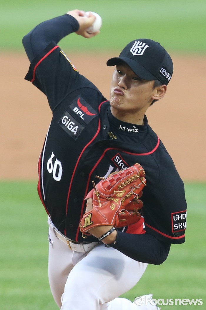 (서울=포커스뉴스) 23일 서울 잠실구장에서 열린 2016 프로야구 kt-두산 경기에서 1회말 kt 선발투수 주권이 투구하고 있다.