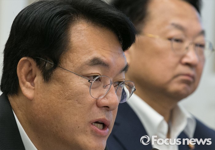 (서울=포커스뉴스) 24일 오전 서울 여의도 국회 귀빈식당에서 열린 2016년 하반기 경제정책방향 당정간담회에 참석한 정진석 새누리당 원내대표가 인사말을 하고 있다.