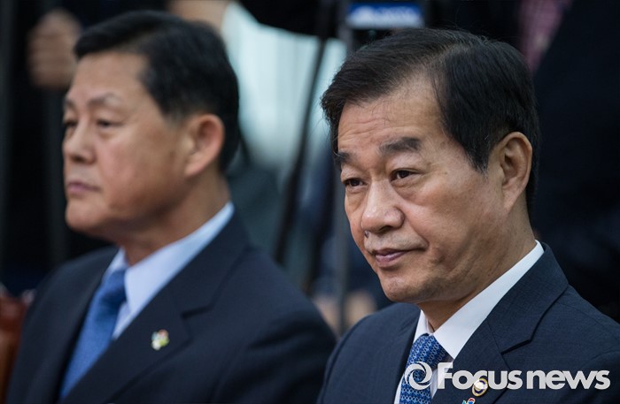 (서울=포커스뉴스) 황인무(오른쪽) 국방부 차관이 24일 오전 서울 여의도 국회 더불어민주당 당대표 회의실 열린 북한 미사일 발사 관련 국방부 현안보고에 참석하고 있다.