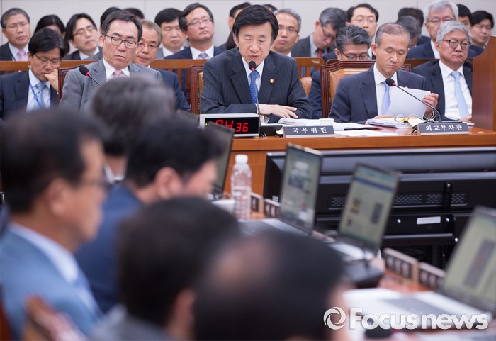 (서울=포커스뉴스) 24일 오전 서울 여의도 국회에서 열린 외교통일위원회 전체회의에 참석한 윤병세(가운데) 외교부 장관이 의원들의 질의에 답하고 있다.