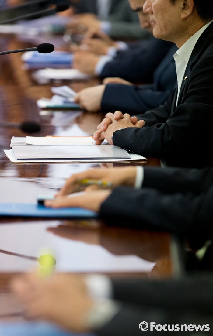 (서울=포커스뉴스) 24일 오후 서울 중구 전국은행연합회에서 최상목 기획재정부 제1차관 주재로 열린 브렉시트 관련 긴급거시경제금융회의에서 참석자들이 회의시작을 기다리고 있다.