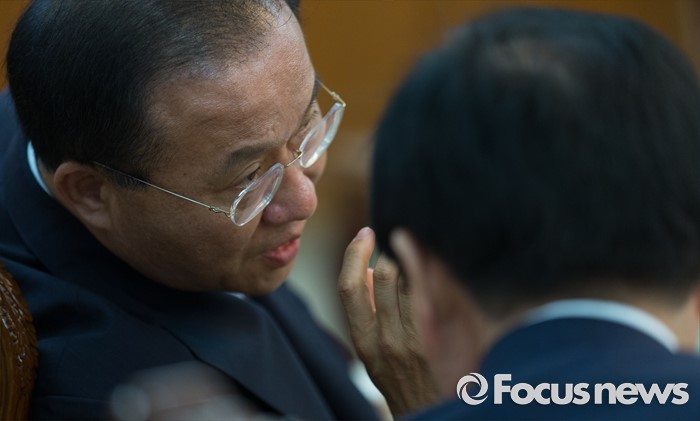 (서울=포커스뉴스) 윤재옥(왼쪽) 새누리당 대구시당 위원장과 곽대훈 의원이 24일 오후 서울 종로구 정부서울청사에서 영남권 신공항 백지화 관련 황교안 국무총리와 면담 전 대화를 나누고 있다.