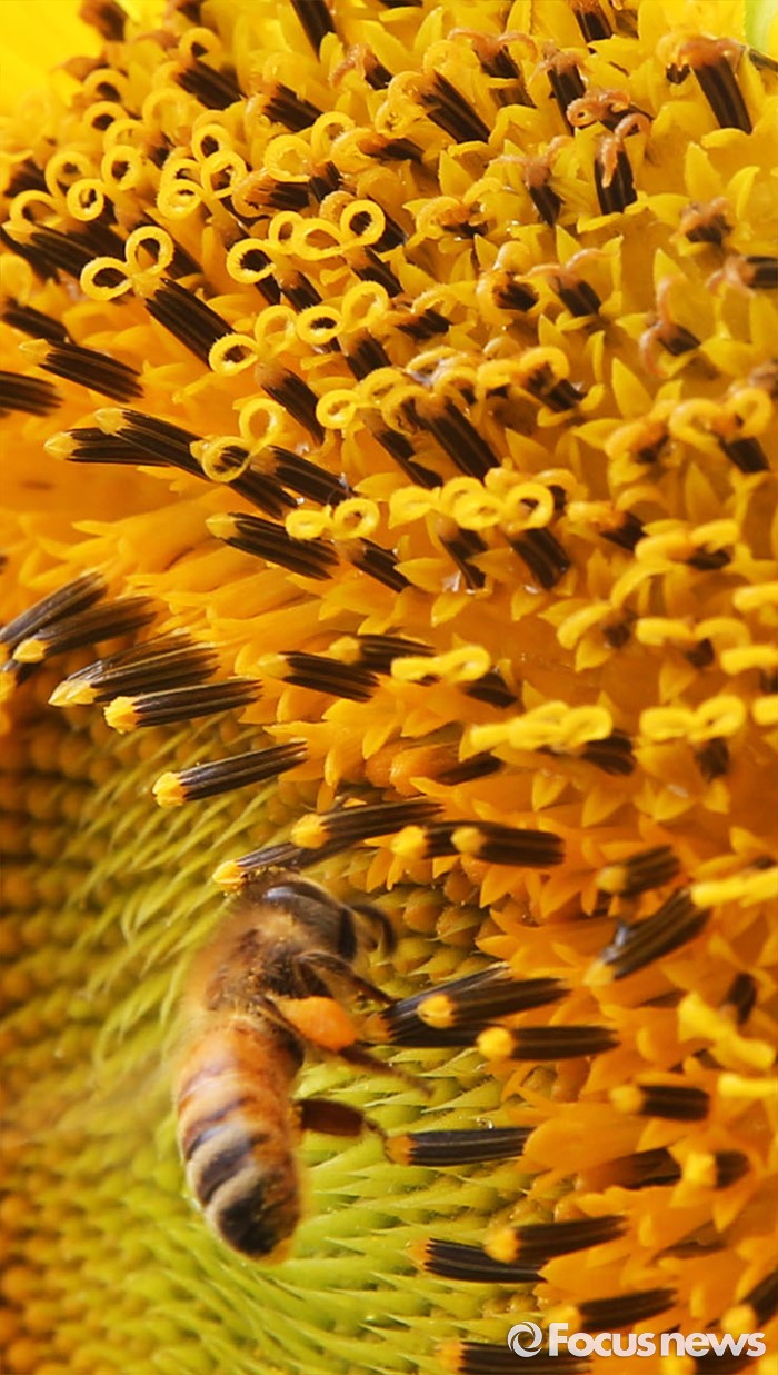 (대전=포커스뉴스) 장마가 소강상태를 보인 24일 오후 대전 유성구 국립대전현충원 보훈동산에 핀 해바라기에 하트모양이 보이고 있다.