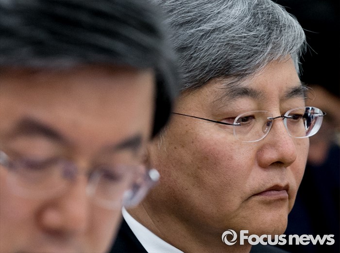 (서울=포커스뉴스) 24일 오후 서울 여의도 국회에서 열린 산업통상자원위원회 전체회의에 참석한 최동규(오른쪽) 특허청장이 생각에 잠겨 있다.