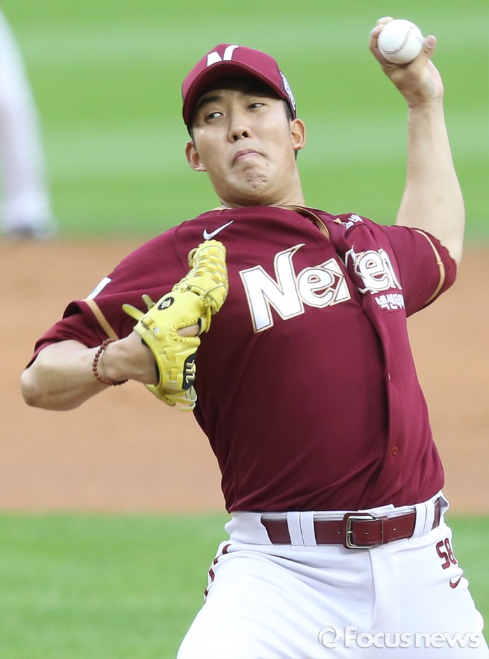 (서울=포커스뉴스) 24일 서울 잠실구장에서 열린 2016 프로야구 넥센-LG 경기에서 1회말 넥센 선발투수 금민철이 투구하고 있다.