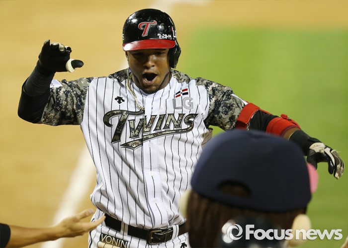 (서울=포커스뉴스) 24일 서울 잠실구장에서 열린 2016 프로야구 넥센-LG 경기 8회말 2사 1,2루에서 LG 히메네스가 역전 3점 홈런을 치고 환호하며 홈인하고 있다.