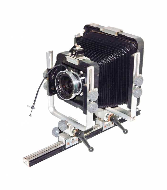 '스위스 카메라 특별전'은 오는 7월4일부터 9월5일까지 경기도 과천 한국카메라박물관 제1전시실에서 개최된다. 경기도민일 경우 관람료를 50% 할인받을 수 있다.'ARCA VIEW 4X5'. 스위스 제네바에서 볼 해드 전문 생산업체인 Arca사가 1970년 경에 생산한 대형 뷰 카메라다. Schneider Kreuznch xenar f4.5/150mm 렌즈와 1초에서1/400초의 렌즈 셔터를 채용했다. 알미늄 주물로 만들고 전, 후에서 모든 무브먼트가 되며 가볍게 심혈을 기울여 제작한 초기 Monprail을 사용한 View 카메라다.<사진제공=한국카메라박물관>