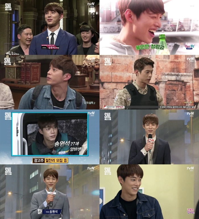 tvN 예능 ‘SNL코리아7’의 크루인 송원석은 매회 다양한 캐릭터에 도전하며 종영까지 약 50개의 캐릭터로 변신, 다양한 콩트연기를 선보였다. 그는 눈에 띄는 비주얼과 상반되는 코믹연기로 시청자들의 눈길을 사로잡았다.