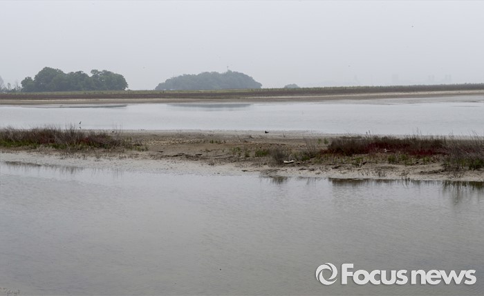 (인천=포커스뉴스) 장다리물떼새 둥지가 있었던 영종도 매립지내 습지의 물빼기 전의 모습.사방이 물로 에워싸 ,육지동물의 침입이 단절되고, 물새들이 서식하기에 최적의 장소라 장다리물떼새들이 올해 이곳을 번식지로 택했다.그러나 이곳은 26일 현재 한진중공업측에서 물빼기 작업을 시작하면서 메마른 땅으로 변해가고 있다.