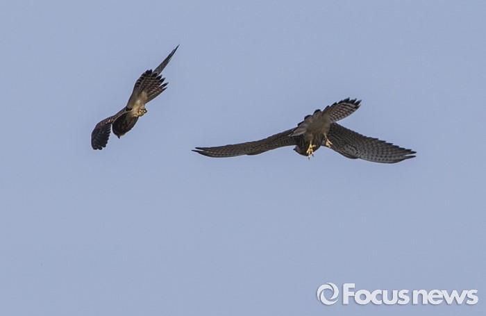 (인천=포커스뉴스)맹금류인 황조롱이들이 26일 오전 영종도 매립지에서 작은 새들을 노리고 있다.