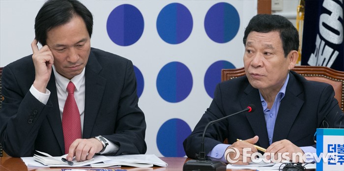 (서울=포커스뉴스) 26일 오전 서울 여의도 국회에서 열린 더불어민주당 시도지사 정책협의회에 참석한 윤장현 광주시장이 발언하고 있다. 왼쪽은 우상호 원내대표.