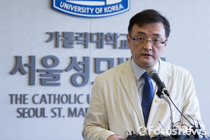 (서울=포커스뉴스) 26일 오후 서울 서초구 서울성모병원에서 장기이식센터장 양철우 교수가 탤런트 김성민 자살시도 관련 브리핑을 하고 있다.
