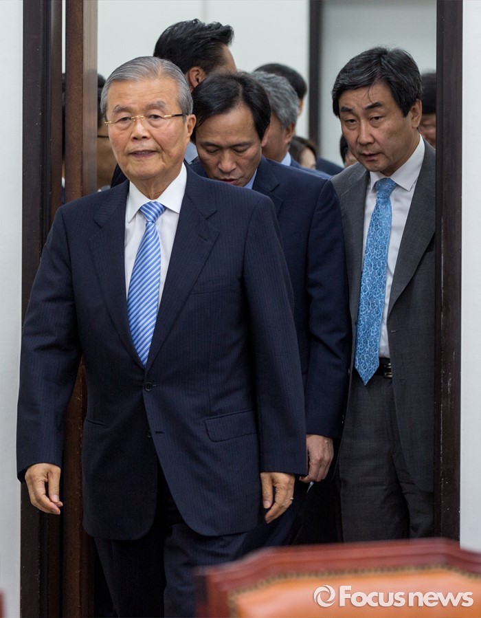 (서울=포커스뉴스) 김종인(왼쪽) 더불어민주당 비상대책위 대표와 우상호(왼쪽 두 번째) 원내대표를 비롯한 비대위원들이 27일 오전 서울 여의도 국회에서 열린 비상대책위원회의에 참석하기 위해 회의실로 들어서고 있다.