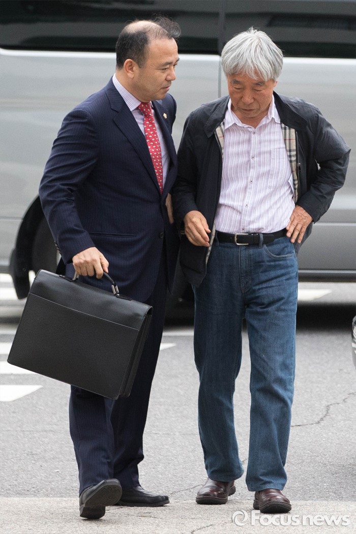 (서울=포커스뉴스) 27일 오전 이우환(80) 화백이 위작 판정이 내려진 작품 13점의 피해자 겸 참고인 신분으로 서울 중랑구 서울지방경찰청 지능범죄수사대에 출석하고 있다.