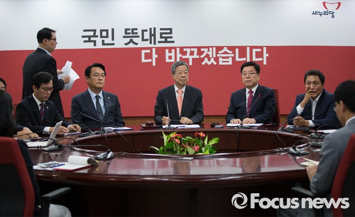 (서울=포커스뉴스) 김희옥(가운데) 새누리당 혁신비대위원장을 비롯한 혁신비대위원들이 27일 오전 서울 여의도 당사에서 열린 혁신비상대책위원회 회의에 참석하고 있다.