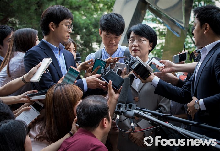 (서울=포커스뉴스) 20대 총선 홍보물 리베이트 수수 과정에 관여한 혐의를 받고 있는 박선숙 국민의당 의원이 27일 오전 서울서부지방검찰청에 조사를 받기 위해 출석하고 있다.