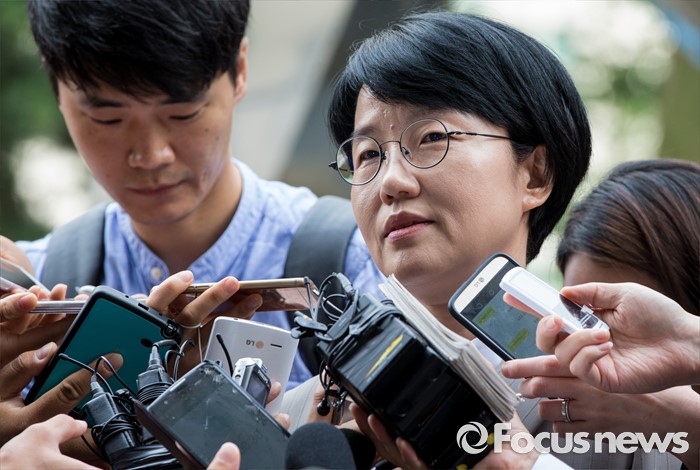 (서울=포커스뉴스) 20대 총선 홍보물 리베이트 수수 과정에 관여한 혐의를 받고 있는 박선숙 국민의당 의원이 27일 오전 서울서부지방검찰청에 조사를 받기 위해 출석하고 있다.