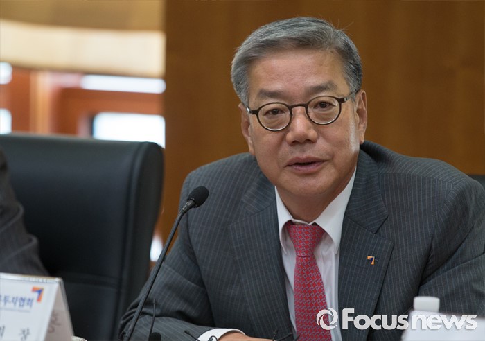 (서울=포커스뉴스) 27일 오전 서울 영등포구 금융투자협회 회의실에서 열린 브렉시트 관련 증권사 사장단 회의에 참석한 황영기 금융투자협회장이 모두발언을 하고 있다.