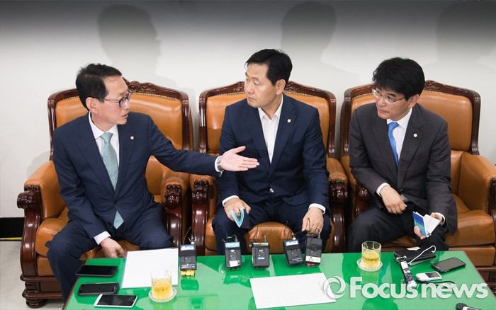 (서울=포커스뉴스) 7월 임시국회 일정 등을 논의하기 위해 모인 여야 3당 원내수석부대표가 27일 오후 서울 여의도 국회에서 회동하고 있다. 왼쪽부터 김도읍 새누리당, 김관영 국민의당, 박완주 더불어민주당 원내수석부대표