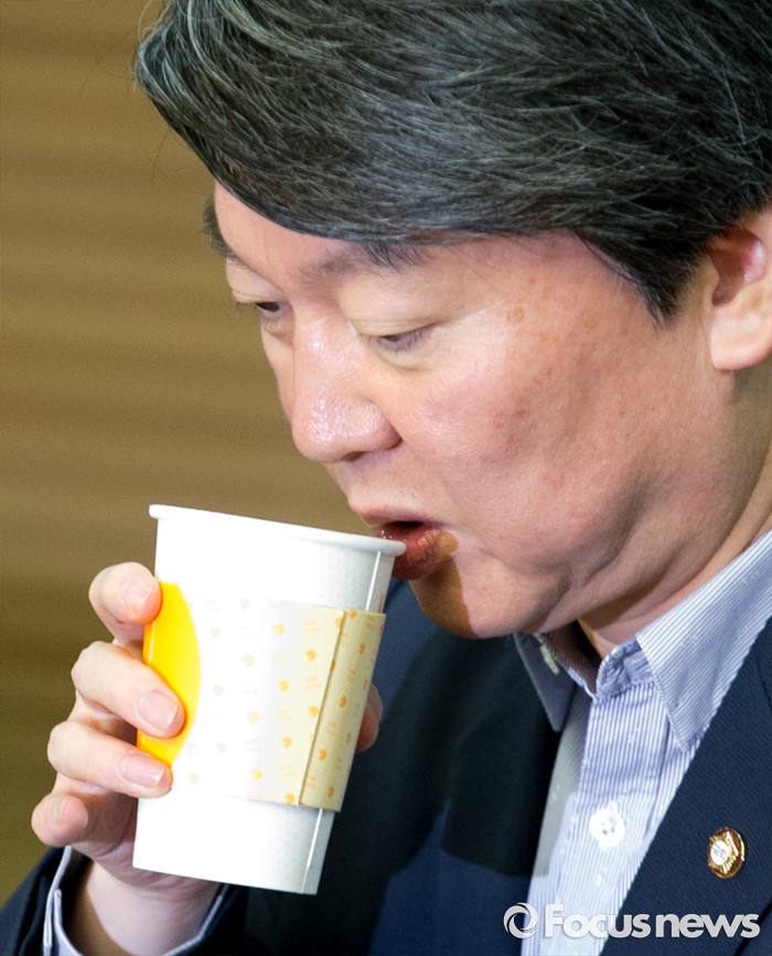 (서울=포커스뉴스) 28일 오전 서울 여의도 국회 의원회관에서 열린 국민의당 20차 정책역량강화 워크숍에 참석한 안철수 상임공동대표가 음료를 마시고 있다.