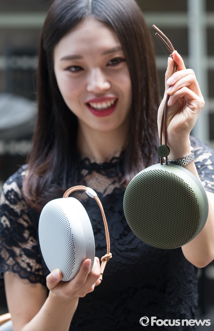 (서울=포커스뉴스) 28일 오전 서울 종로구의 한 카페에서 열린 뱅앤올룹슨의 블루투스 스피커 '베오플레이 A1(Beoplay A1)' 출시 포토세션행사에 한 모델이 신제품을 선보이고 있다.
