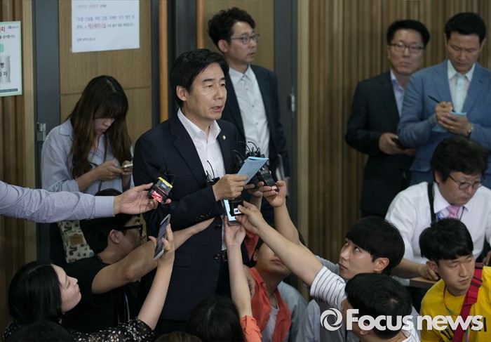 (서울=포커스뉴스) 28일 오전 서울 여의도 국회 의원회관에서 왕주현 전 사무부총장 구속 등 리베이트 수수 의혹 관련 비공개 국민의당 의원총회를 마친 이용호 원내대변인이 결과 브리핑을 하고 있다.