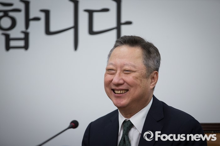 (서울=포커스뉴스)28일 오전 서울 여의도 국회 더불어민주당을 방문한 박용만 대한상공회의소 회장이 김종인 비상대책위원회 대표를 만나 환하게 웃고 있다.