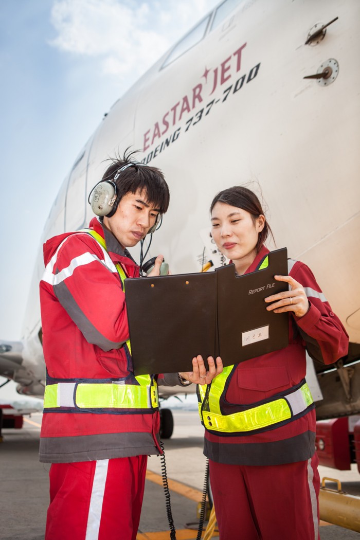 이스타항공 정비본부 내에는 정비팀, 정비품질팀, 정비기술팀, 정비계획팀이 운영되고 있다. 정비사 입사 후에는 역량 강화 교육·해외근무 기회 등이 제공된다.이스타항공 정비사가 항공기 정비 점검을 하고 있다. <사진제공=이스타항공>