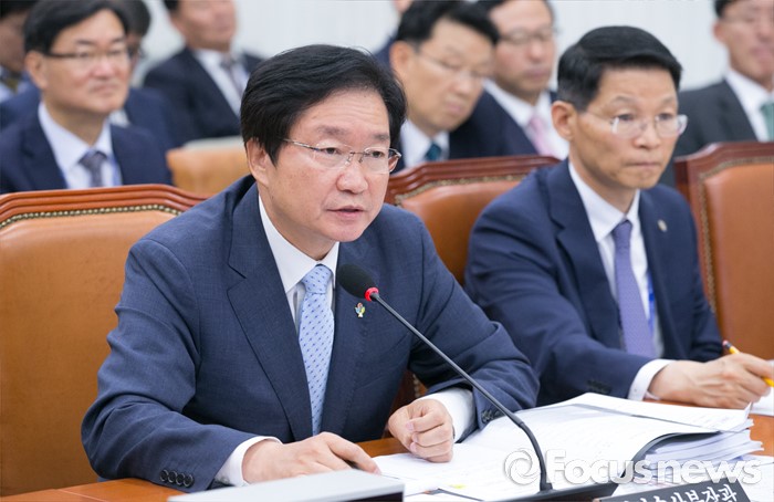 (서울=포커스뉴스) 28일 오후 서울 여의도 국회에서 열린 농림축산식품해양수산위원회 전체회의에 참석한 김영석 해양수산부 장관이 의원들의 질의에 답하고 있다.