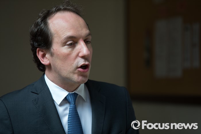 (서울=포커스뉴스) 28일 오후 서울 서초구 서울프랑스학교에서 파비앙 페논 주한 프랑스 대사가 '파리식 길 표지판 공개 행사'에 앞서 인사말을 하고 있다.