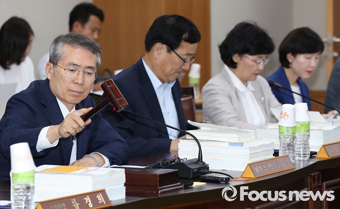(세종=포커스뉴스) 박준성 최저임금위원회 위원장이 28일 오후 세종시 정부세종청사 고용노동부 최저임금위원회 전원히의실에서 열린 최저임금위원회 제7차 전원회의에서 의사봉을 두드리고 있다.