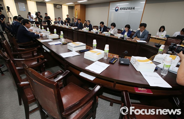 (세종=포커스뉴스) 박준성 최저임금위원회 위원장이 28일 오후 세종시 정부세종청사 고용노동부 최저임금위원회 전원히의실에서 열린 최저임금위원회 제7차 전원회의를 주재하고 있다.