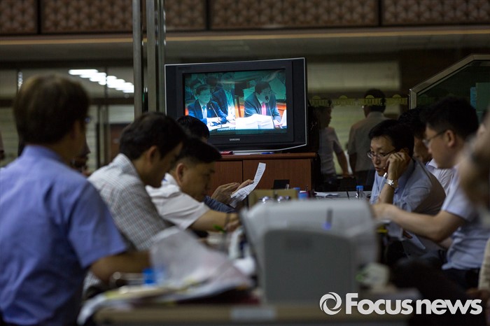 (서울=포커스뉴스) 28일 오후 서울 여의도 국회에서 상임위원회에 업무 지원을 나선 관계기관 공무원들이 전체회의가 열리는 회의실 밖을 지키며 업무를 보고 있다.