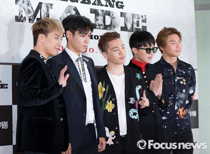(서울=포커스뉴스) 28일 오후 서울 CGV 영등포점에서 영화 '빅뱅 메이드' VIP 시사회에 참석한 빅뱅이 포즈를 취하고 있다.
