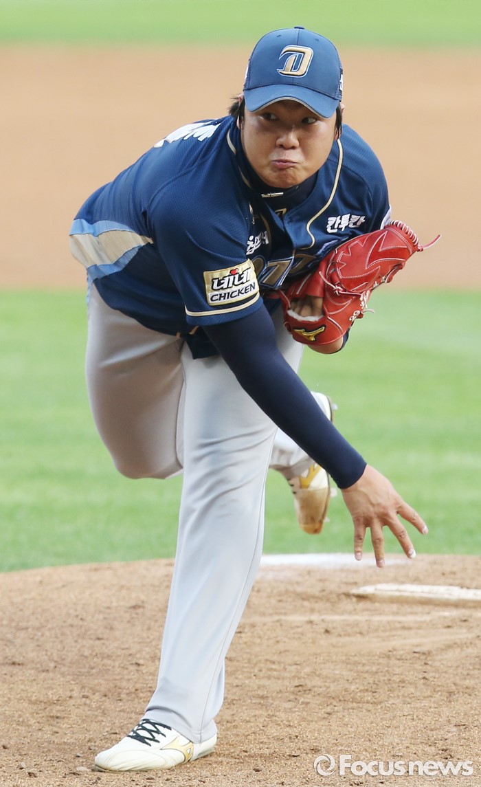(서울=포커스뉴스) 28일 서울 잠실구장에서 열린 2016 프로야구 NC-두산 경기에서 1회말 NC 선발투수 이민호가 투구하고 있다.