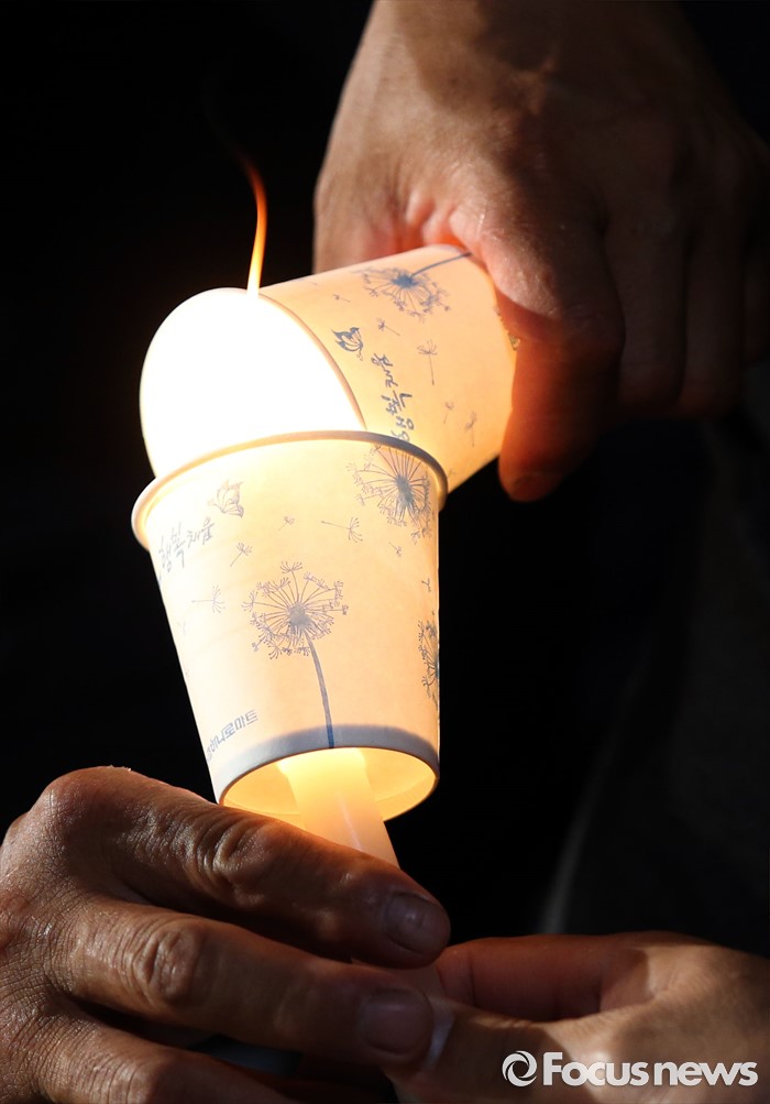 | △ 촛불 켜는 조합원 |