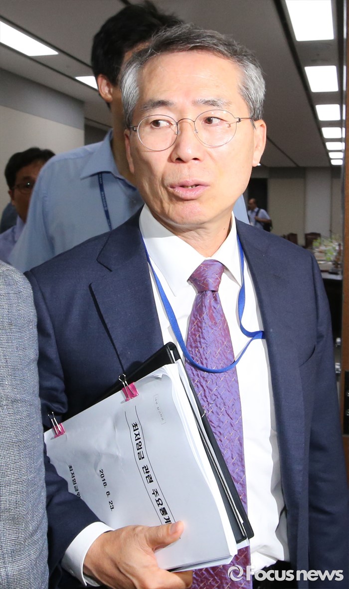 (세종=포커스뉴스) 29일 세종시 정부세종청사 고용노동부 최저임금위원회 전원회의실에서 박준성 위원장이 회의를 마치고 회의장을 나서고 있다. 최저임금 결정 법정 시한인 28일을 넘겼지만 최저임금 합의를 하지 못했다. 다음 8차 회의는 7월 4일에 열린다.