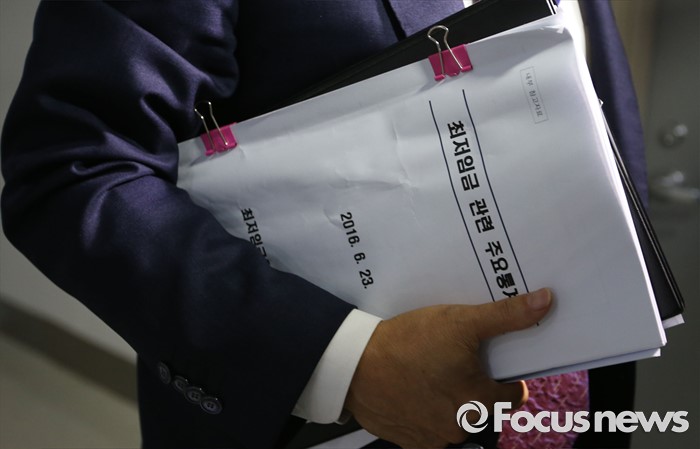 (세종=포커스뉴스) 29일 세종시 정부세종청사 고용노동부 최저임금위원회 전원회의실에서 박준성 위원장이 회의를 마치고 회의장을 나서고 있다. 최저임금 결정 법정 시한인 28일을 넘겼지만 최저임금 합의를 하지 못했다. 다음 8차 회의는 7월 4일에 열린다.
