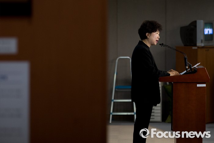 (서울=포커스뉴스) 박인숙 새누리당 의원이 29일 오전 서울 여의도 국회에서 5촌 조카를 5급 비서관에, 동서를 비서에 채용한 사실을 밝히며 국민들에게 사과 입장을 밝히는 기자회견을 하고 있다.