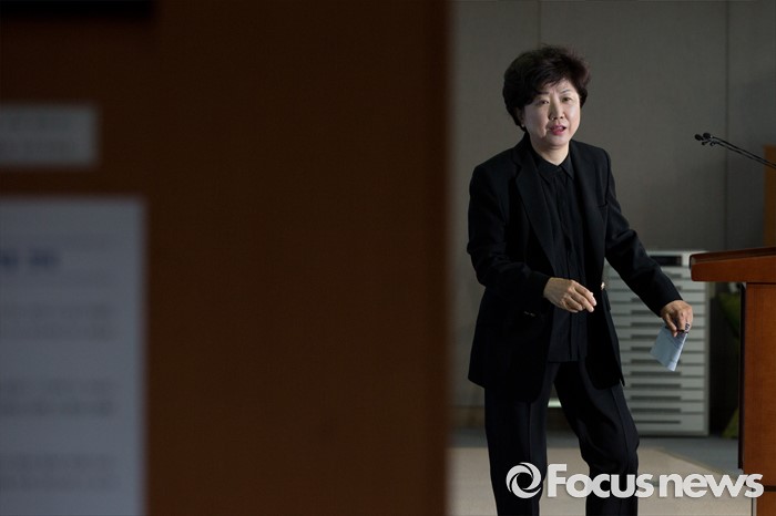 (서울=포커스뉴스) 박인숙 새누리당 의원이 29일 오전 서울 여의도 국회에서 5촌 조카를 5급 비서관에, 동서를 비서에 채용한 사실을 밝히며 국민들에게 사과 입장을 밝히는 기자회견을 마치고 있다.