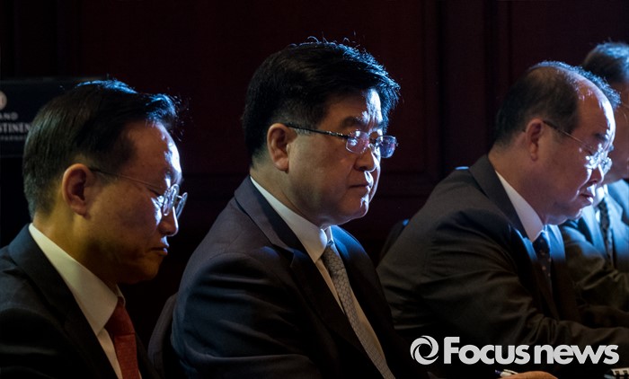 (서울=포커스뉴스) 29일 오전 서울 강남구 그랜드 인터콘티넨탈 호텔에서 열린 산업부 주최 조선업계 CEO ·전문가 간담회에 참석한 박대영(왼쪽부터) 삼성중공업 사장, 권오갑 현대중공업 사장, 정성립 대우조선해양 사장이 굳은 표정을 짓고 있다.
