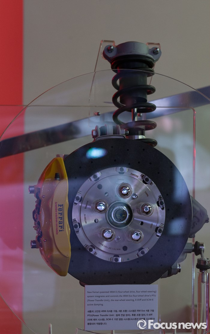 (서울=포커스뉴스) 29일 오전 서울 광진구 W서울 워커힐 호텔에서 이탈리아 스포츠카 브랜드 페라리가 'GTC4 루쏘(GTC4Lusso)'를 선보이고 있다. 사진은 신차의 4RM-S(4륜구동, 4륜조향) 모습.