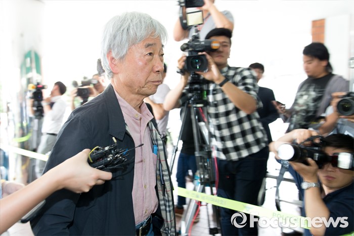 (서울=포커스뉴스) '위작 논란'에 휩싸인 현대미술가 이우환(80) 화백이 29일 오후 서울지방경찰청 지능범죄수사대로 최종 입장을 밝히기 위해 출석하고 있다.