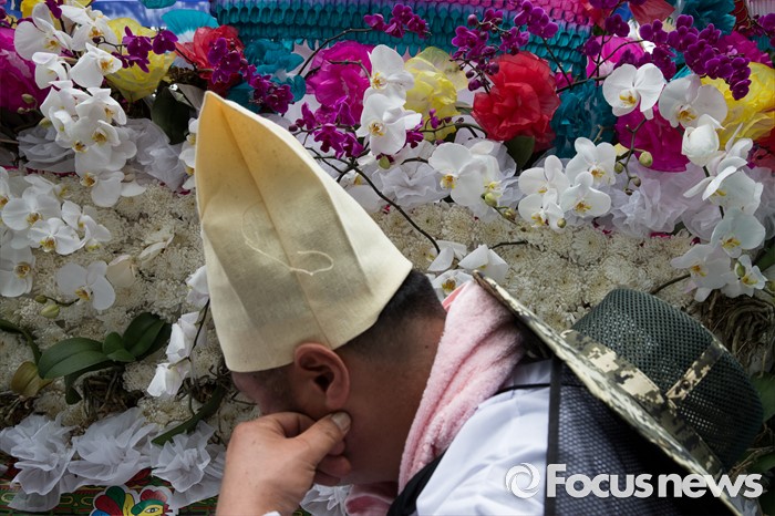 (서울=포커스뉴스) 29일 오후 서울 영등포구 국회의사당 인근에서 전국화훼협회 등 27개 단체원들이 김영란법 반대를 외치며 꽃상여를 메고 행진하고 있다.
