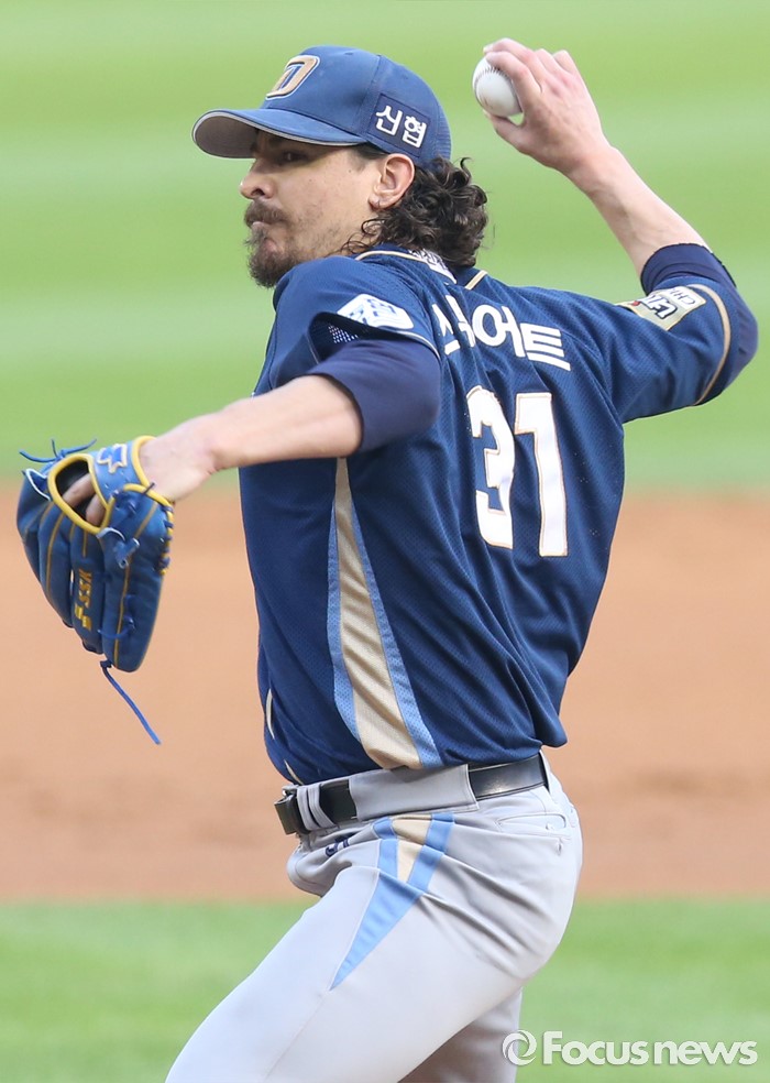 (서울=포커스뉴스) 29일 서울 잠실구장에서 열린 2016 프로야구 NC-두산 경기에서 1회말 NC 선발투수 스튜어트가 투구하고 있다.