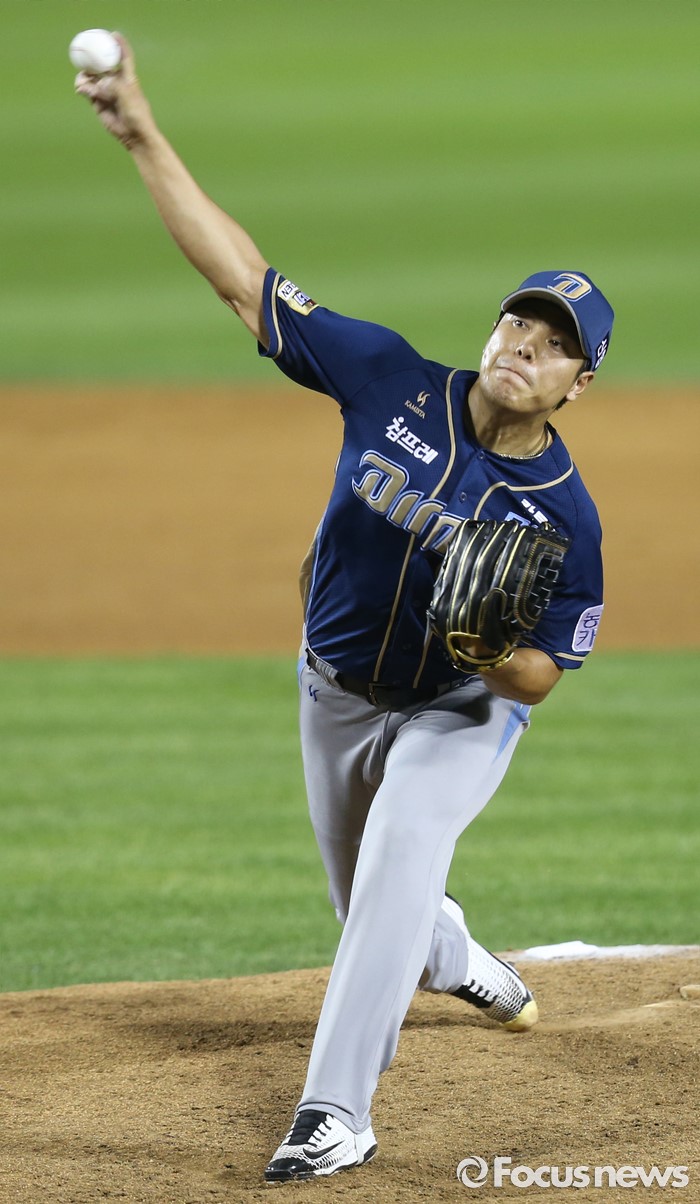 (서울=포커스뉴스) 29일 서울 잠실구장에서 열린 2016 프로야구 NC-두산 경기에서 NC 투수 김진성이 등판해 투구하고 있다.