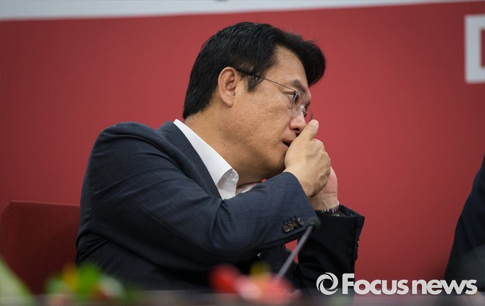 (서울=포커스뉴스) 정진석 새누리당 원내대표가 30일 오전 서울 여의도 당사에서 혁신비상대책위원회의를 하던 중 전화를 받고 있다.