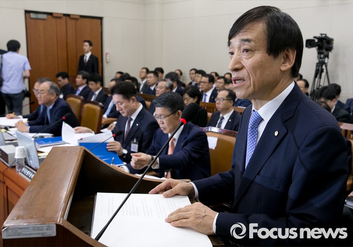 (서울=포커스뉴스) 30일 오전 서울 여의도 국회에서 열린 기획재정위원회 전체회의에 참석한 이주열 한국은행 총재가 업무보고를 하고 있다.