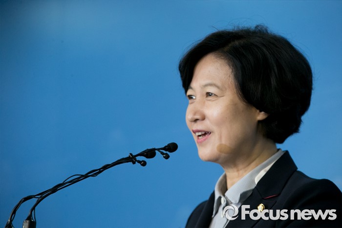 (서울=포커스뉴스) 전당대회 출마를 선언한 추미애 더불어민주당 의원이 30일 오전 서울 여의도 국회 정론관에서 새만금 공항 건설 공약과 관련 기자회견을 하고 있다.