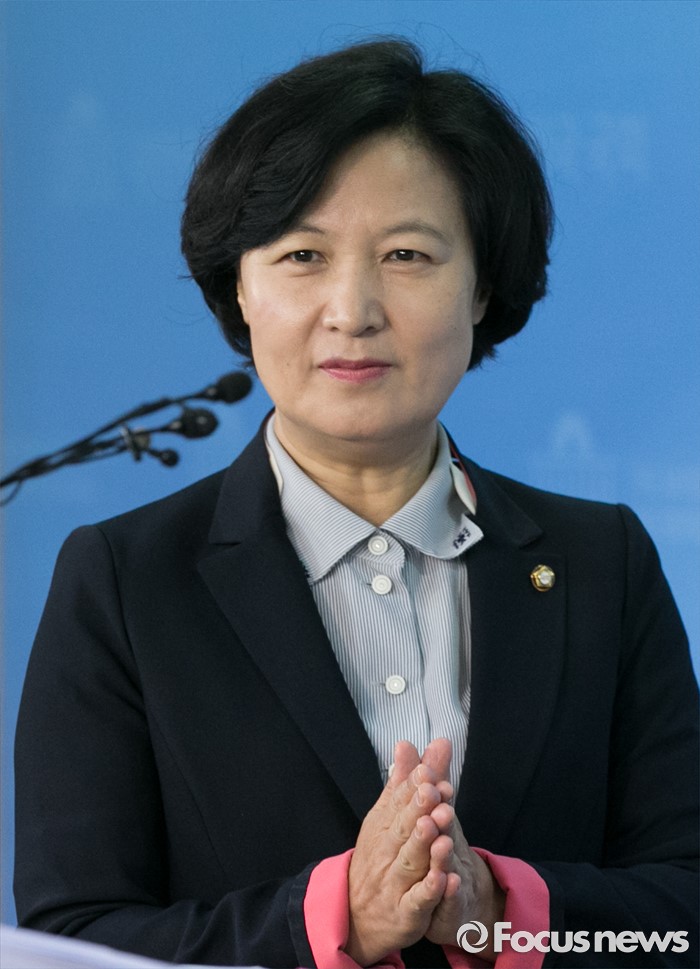 (서울=포커스뉴스) 전당대회 출마를 선언한 추미애 더불어민주당 의원이 30일 오전 서울 여의도 국회 정론관에서 새만금 공항 건설 공약과 관련 기자회견을 위해 입장하고 있다.